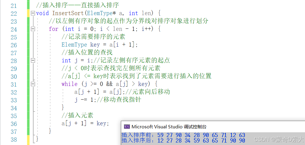 现在我们就完成了插入排序所有代码的编写,接下来我们就来测试一下插入排序,如下所示: