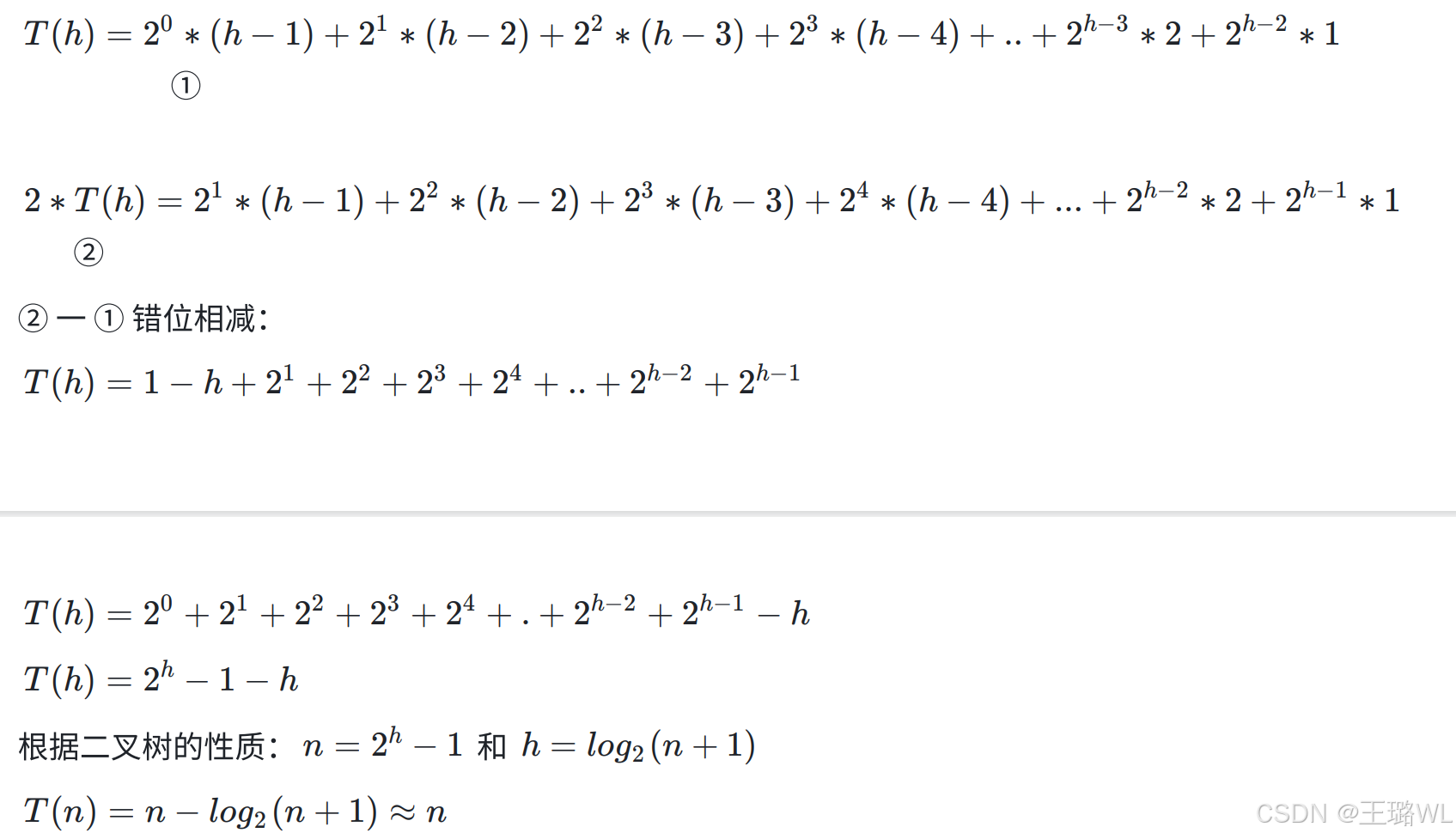 3)若规定根结点的层数为 1 ,具有 n 个结点的满⼆叉树的深度 h = log2 (n + 1)