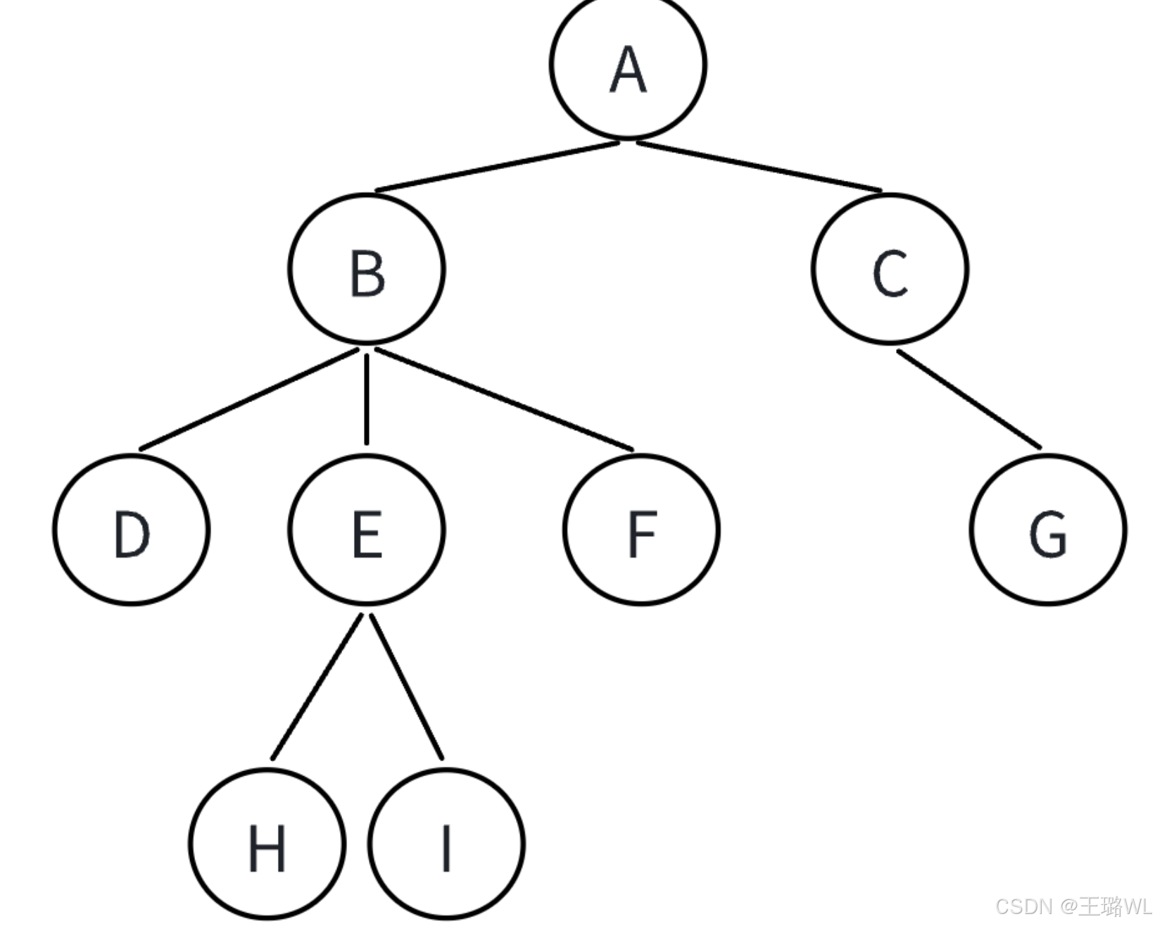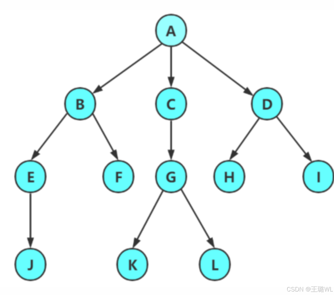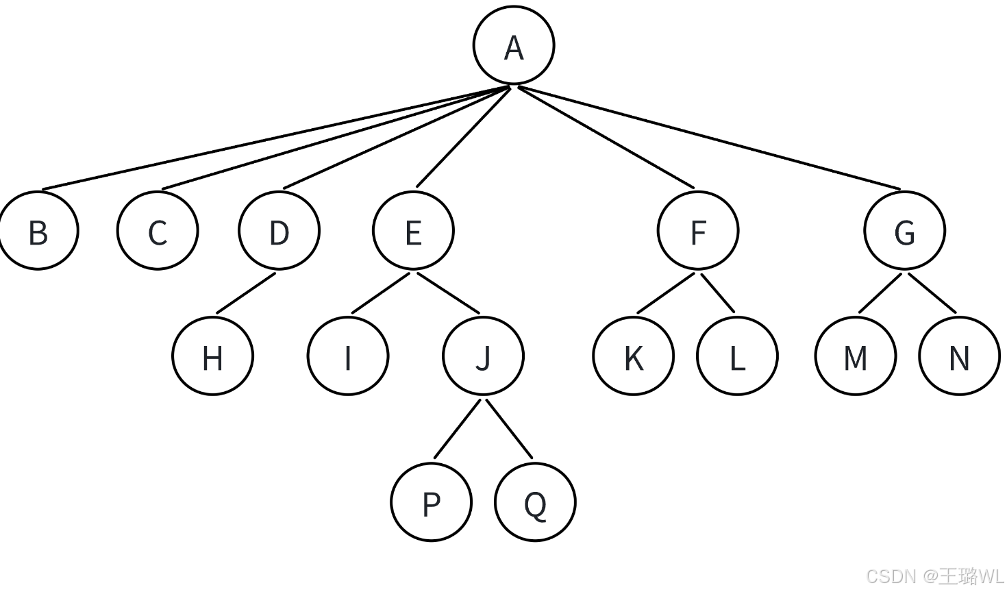 路径:⼀条从树中任意节点出发,沿⽗节点-⼦节点连接,达到任意节点的序列;⽐如A到Q的路径为: A-E-J-Q;H到Q的路径H-D-A-E-J-Q