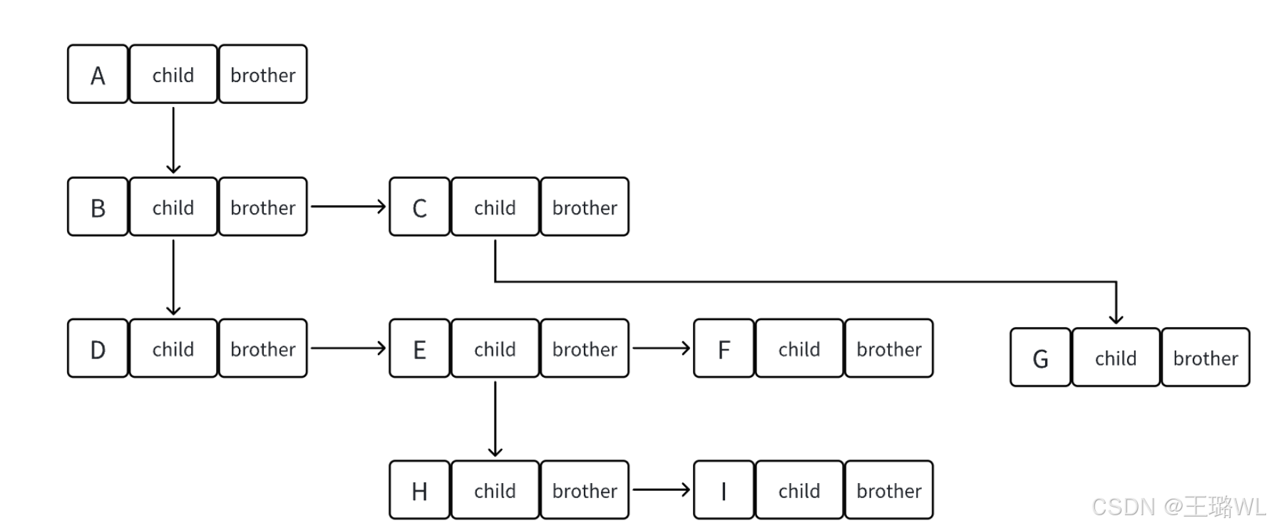 struct Node* brother; // 指向其右边的下⼀个兄弟结点