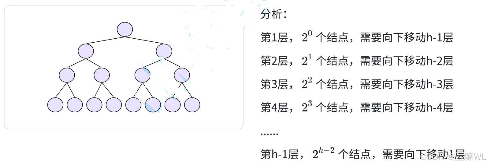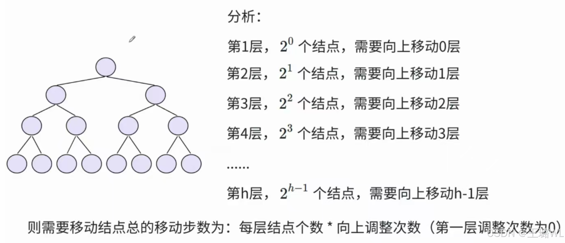 1)若规定根结点的层数为 1 ,则⼀棵⾮空⼆叉树的第i层上最多有2i−1个结点