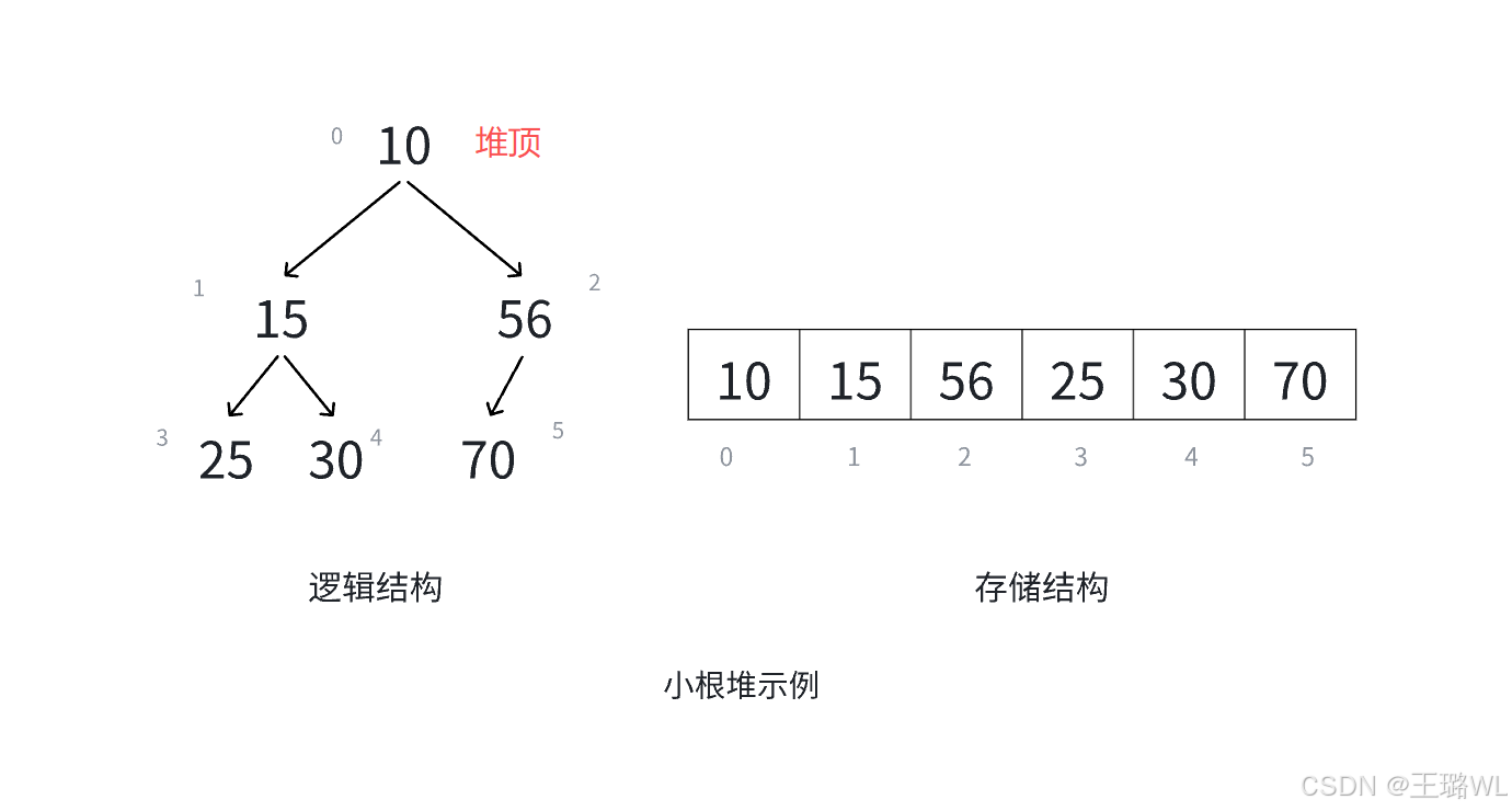 将根结点最⼤的堆叫做最⼤堆或⼤根堆,根结点最⼩的堆叫做最⼩堆或⼩根堆。