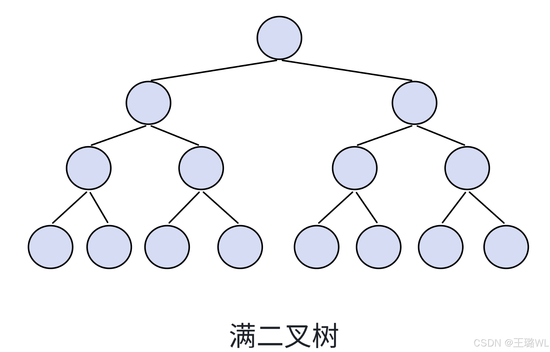 ⼀个⼆叉树,如果每⼀个层的结点数都达到最⼤值,则这个⼆叉树就是满⼆叉树。也就是说,如果⼀个⼆叉树的层数为 K ,且结点总数是2k-1 ,则它就是满⼆叉树。