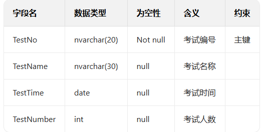 TestNo nvarchar(20) not NULL PRIMARY KEY,
