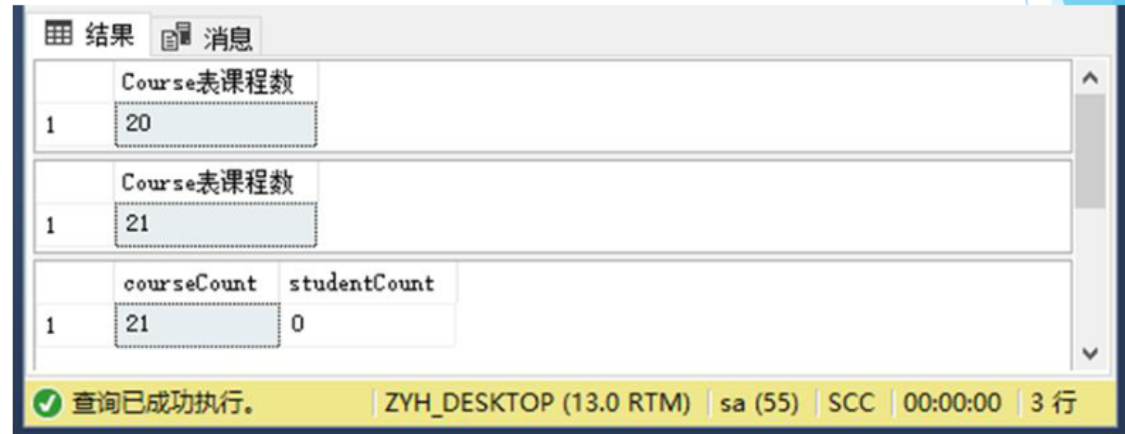 DECLARE @courCount INT; --声明一个变量用于保存课程总数