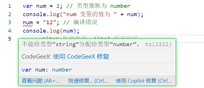 // 错误: 类型"string"的参数不能赋给类型"number"的参数