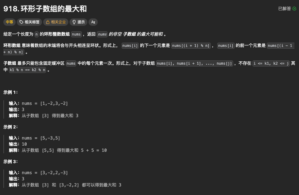 - [1.2 环形子数组的最大和](#1.2 环形子数组的最大和)