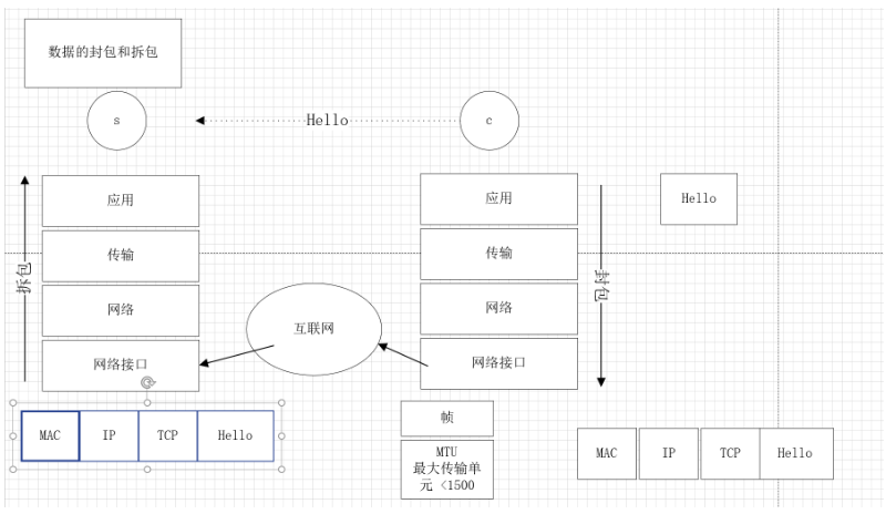 数据封装:应用层 → 传输层 → 网络层 → 链路层