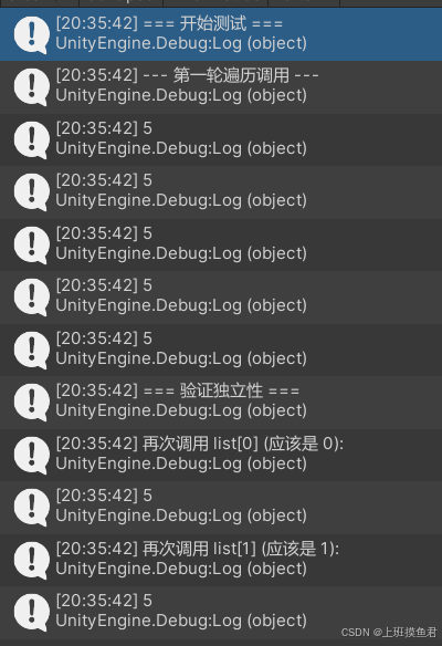 Debug.Log("再次调用 list[0] (期望是 0):");