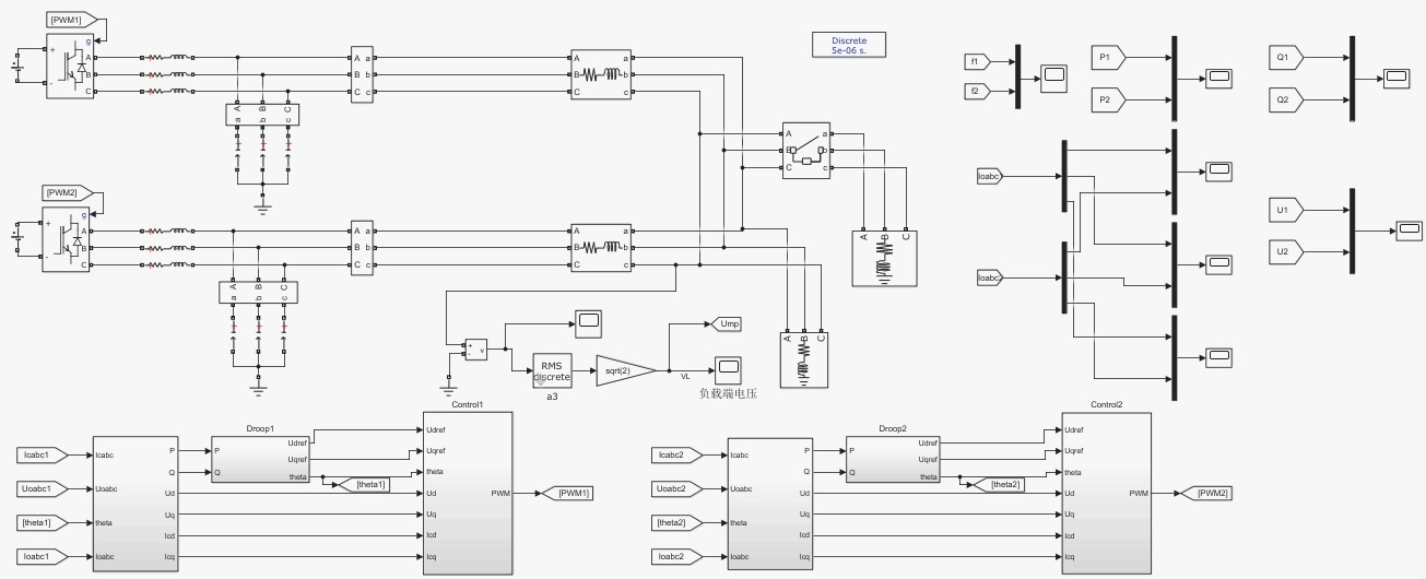 关于这个模型的具体实现和理论基础,大家可以参考[具体参考文献]。通过深入研读参考文献里的内容,再结合这个基础模型,相信各位对双机并联自适应虚拟阻抗下垂控制(droop)能有更透彻的理解,也能基于此进行更多有创意的拓展研究。