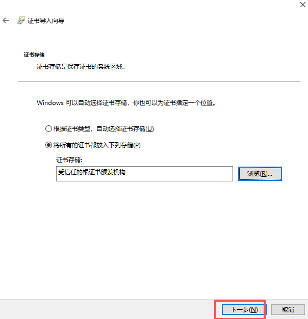 - 安装到受信任的根证书下
