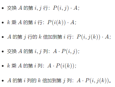 | 交换 E 的第 i,j 行 / 列 | 换行 / 列初等矩阵 | P(i,j) | |