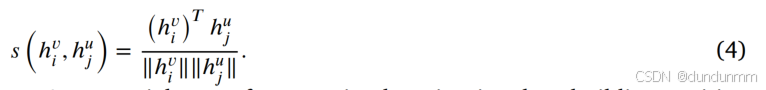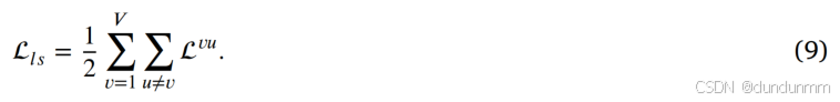 类似于 SimCLR,本文引入实例级特征投影头,将第 v 个视图的潜在表示 Zv投影到低维嵌入空间 Hv,以促进高效的对比学习。在新的嵌入空间中,采用余弦相似度度量两个样本之间的相似性:
