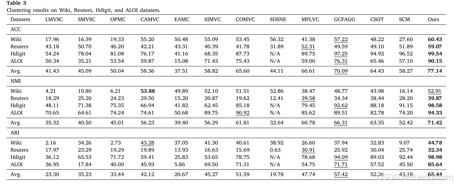 大量实验结果表明,所提出的方法在多个基准数据集上均显著优于现有的先进多视图聚类方法,验证了其在聚类性能方面的有效性与优越性。