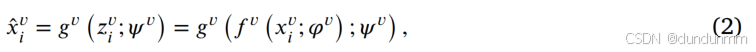 其中,x^iv表示第 v 个视图中第 i 个样本的重构结果,ψv为对应解码器的参数。