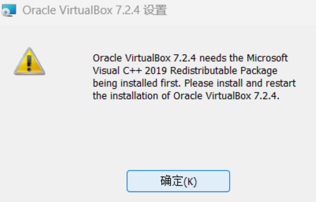 先安装 vc_redist.x64.exe 在安装 VirtualBox-7.2.4-170995-Win.exe 然后重启电脑