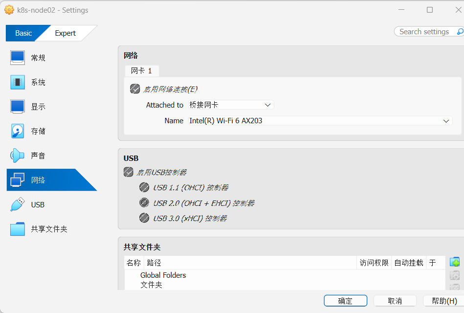 选择安装的机器 网络改成 桥接网卡 其他的不变 重启