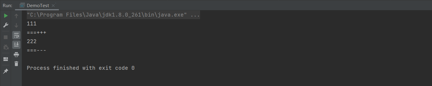 此时 Demo 类的静态初始化全部完成,JVM 回到 main 方法继续执行暂停的 new Demo("---") 语句,触发 Demo 类的实例化流程,调用构造函数 Demo(String num),传入参数"---",控制台输出 ===---,程序执行结束。