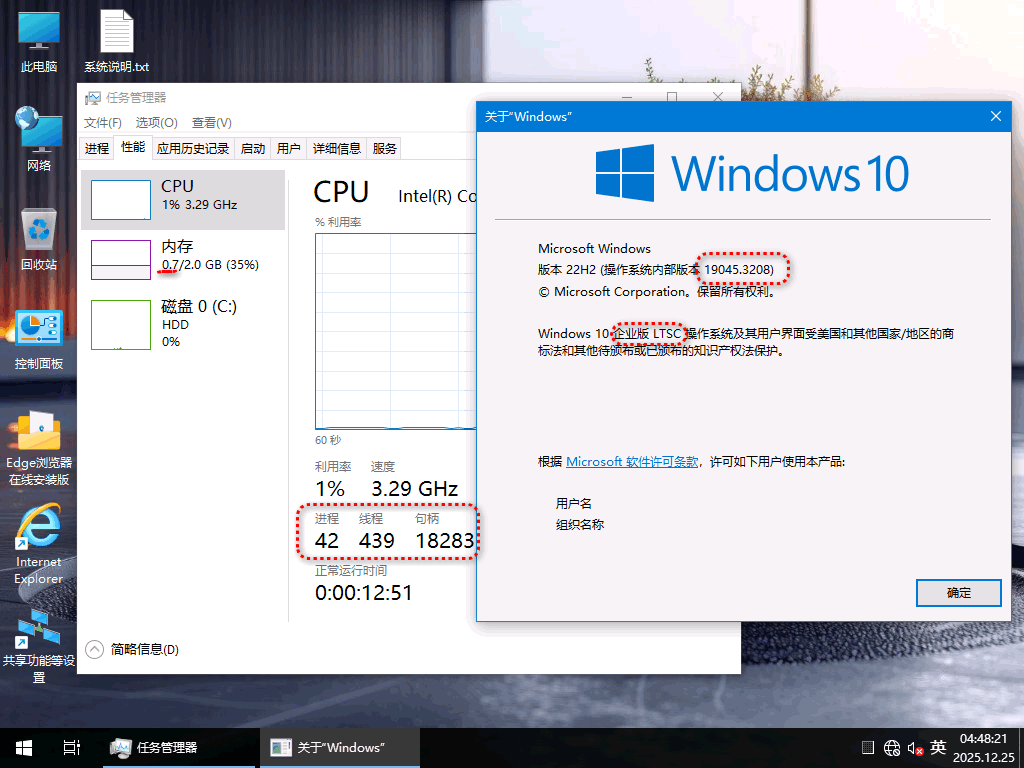 最新版LTSC2021 Win10.22H2 19045.3208 [2025.12.25更新] 【可更新 】===养老版 老旧电脑福利 老电脑也能流程运行