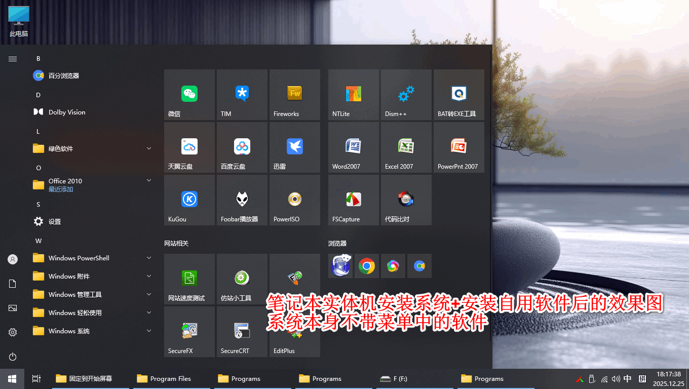 集成了VC运行库 、NET3.5 、NET4.8.1、一些设计字体、VP9/AV1/Webp/HEIF/HEVC扩展、 Intel RST VMD驱动等等