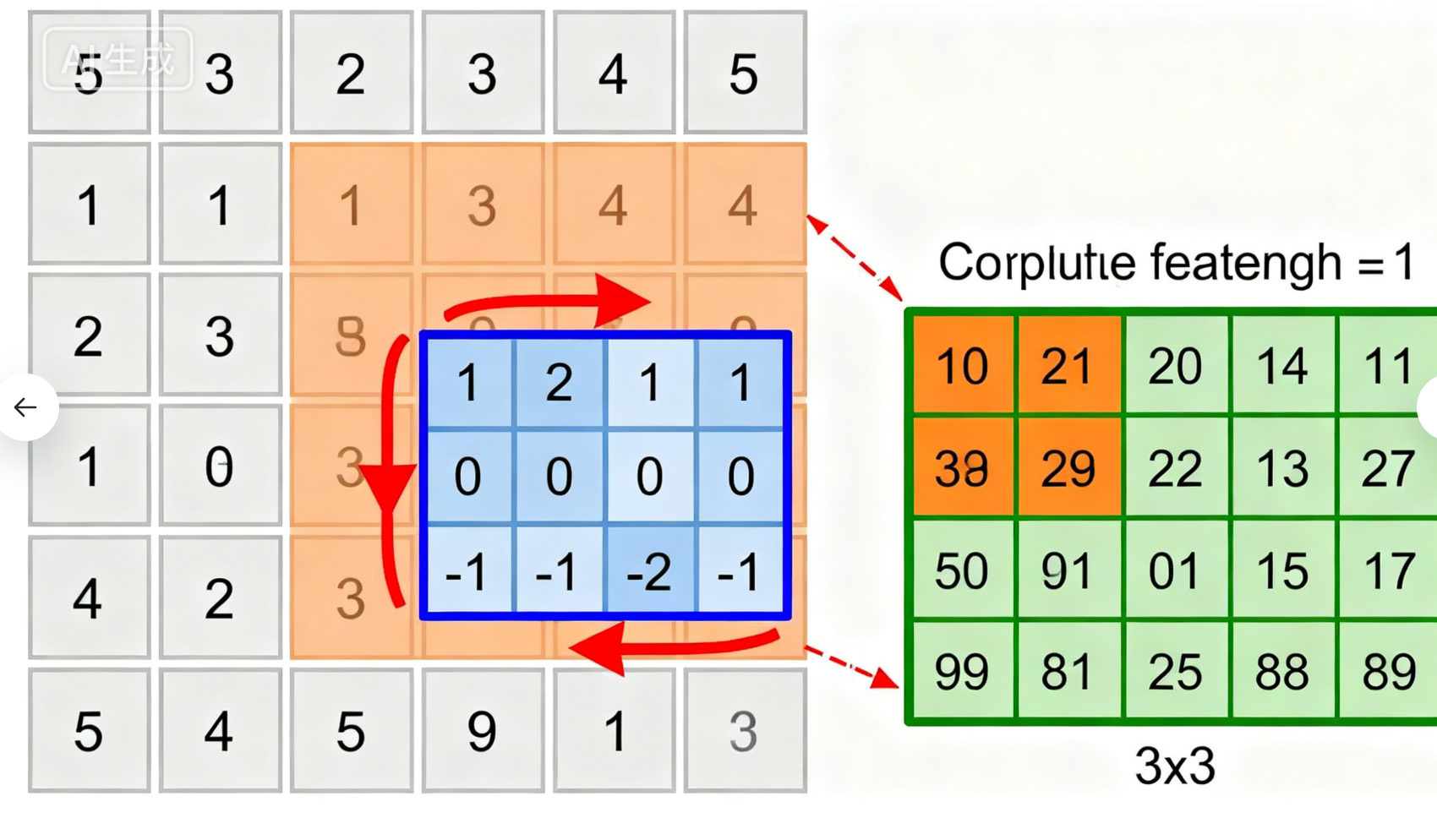 卷积层:核心特征提取层,通过多个卷积核对输入图像进行卷积运算,生成特征图(Feature Map)。卷积运算的本质是通过滑动窗口计算局部区域的加权和,权重即卷积核的参数,由模型训练学习得到。