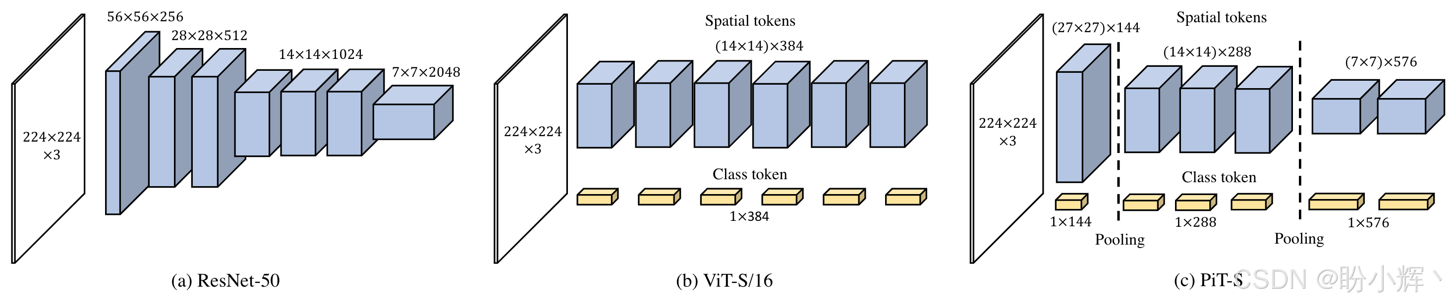 PiT逐步增加每个token的通道维度(特征深度),形成类似CNN的"金字塔结构"(如ResNet的通道数随层数增加),这种设计平衡了计算开销与特征表达能力 - 多尺度特征融合:通过分层降低空间分辨率,