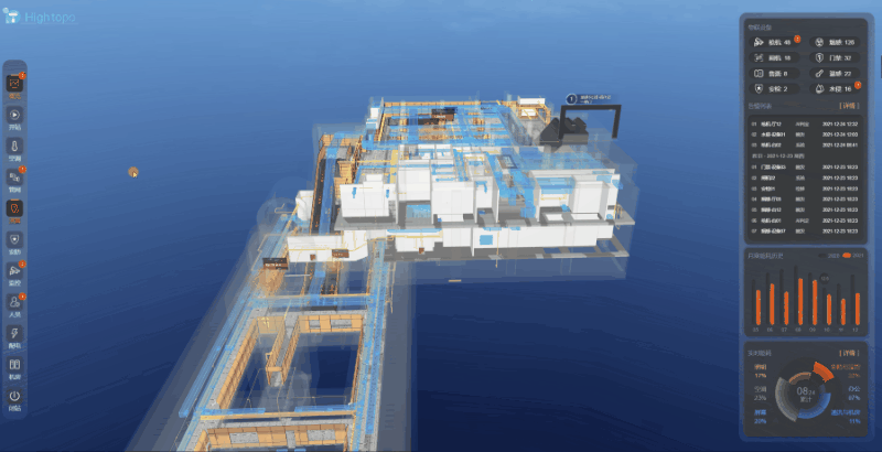 故障诊断功能基于大数据分析技术构建:通过收集设备运行历史数据与实时参数,建立故障特征模型,利用算法挖掘数据规律。当监测数据超出预设阈值时,JavaScript 脚本触发 HT 预警 API,在 3D 场景中以高亮、闪烁等可视化效果标记故障设备,并自动生成诊断报告,实现从被动维修到主动预警的转型,提升运营管理效率。