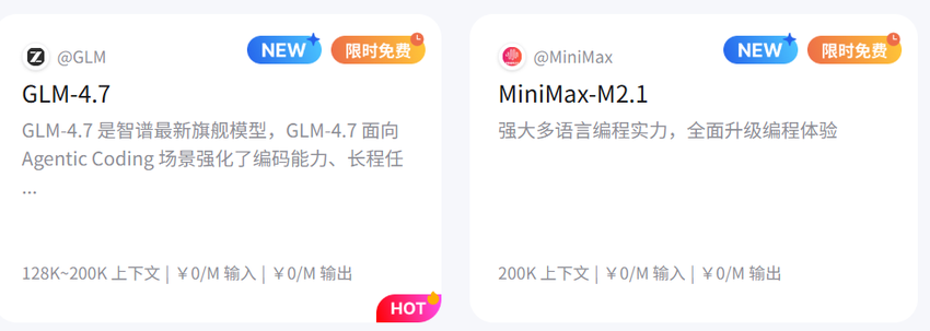 GLM-4.7 与 MiniMax M2.1 的组合,刚好覆盖这三类诉求:一个更偏"复杂任务一次性交付",一个更偏"长时运行效率与吞吐"。