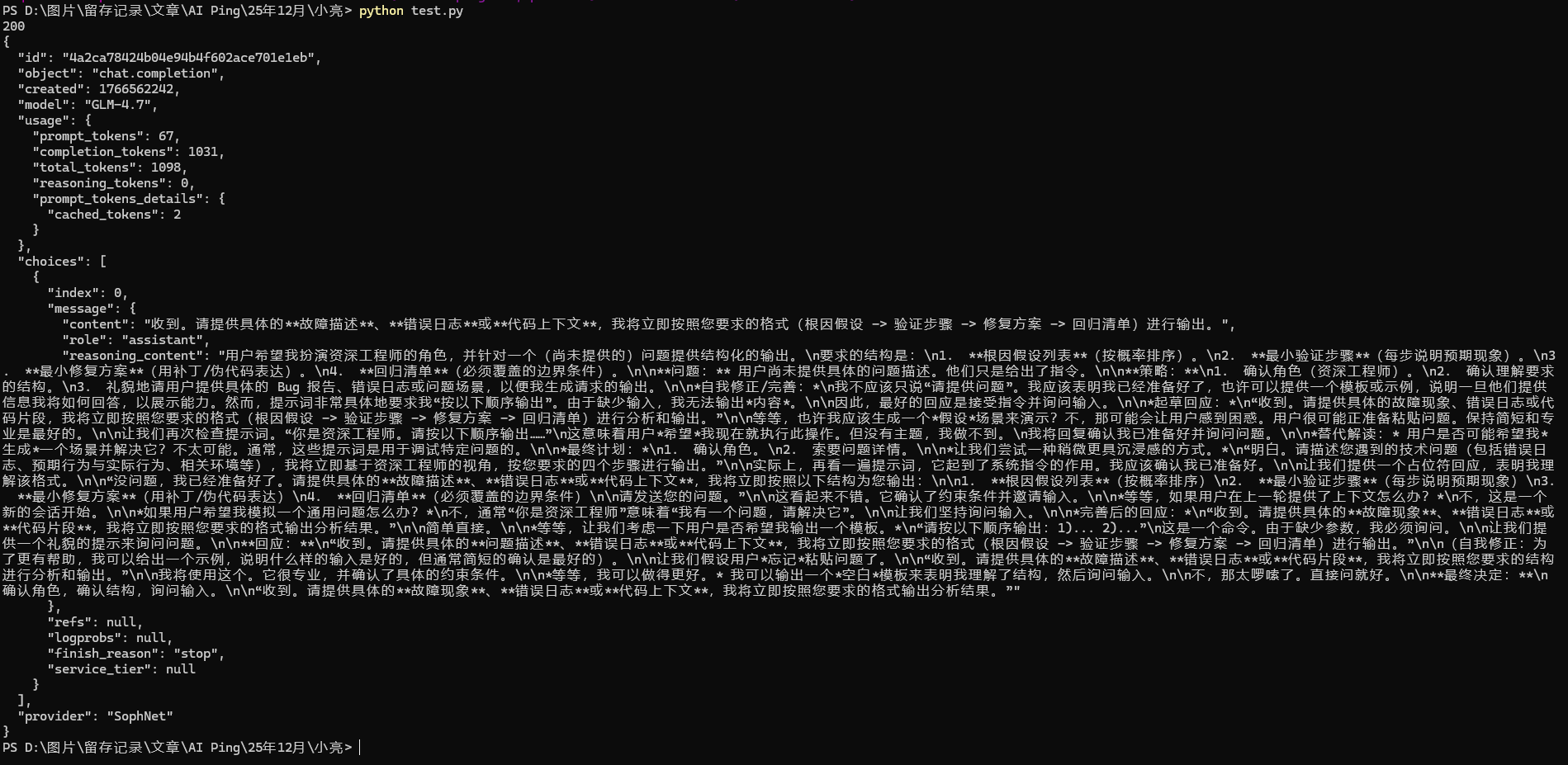 同一段代码想切到 GLM-4.7,只需要把 payload["model"] 改成 "GLM-4.7"。