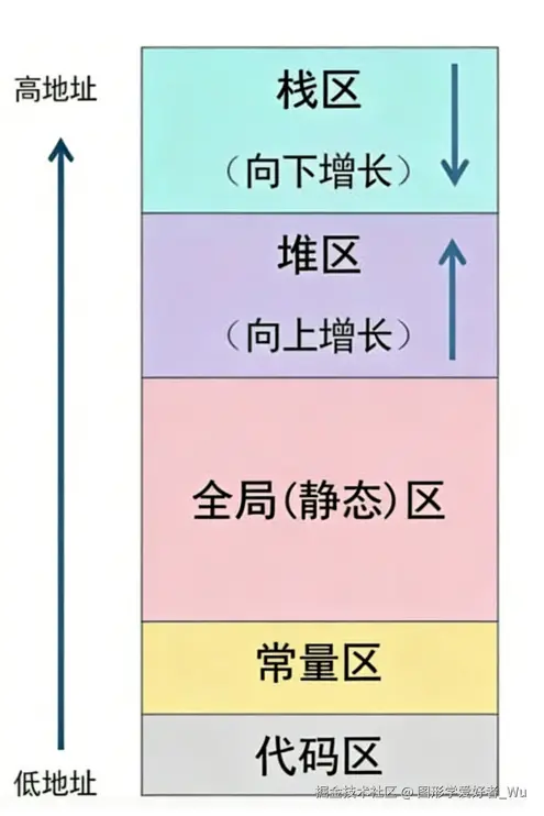 记忆:常量指针是 "指向常量的指针" ,指向的内存内容是常量,指针本身是变量,const远离指针