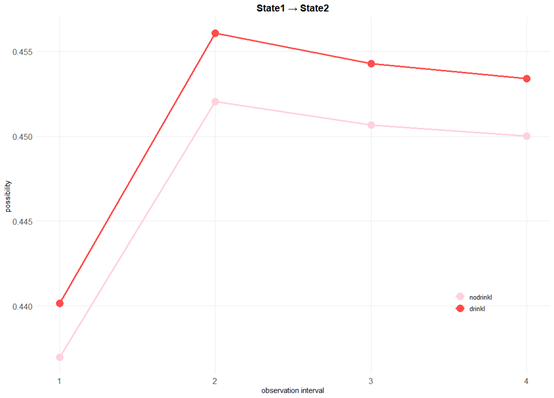 out3<-sci_msm(data=bc2,ID="ID",time = "time",state = "state",digits = 7,death_state=F,cov="drinkl",