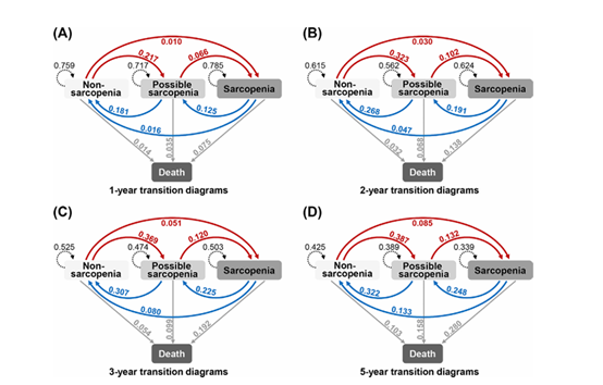 在既往文章中咱们介绍的是由吸收状态的马尔科夫链,问题来了,什么是吸收状态的马尔科夫链?这个就是相当于有一个结局变量,比如在《手把手带你复现一篇一区9.1分肌少症和马尔科夫链》这篇文章中死亡是它的结局变量,分析了肌少症在不同时期的转换最后死亡的关系,没有结局变量也是能做的,研究的是协变量对概率转换的影响,下面我来演示一下