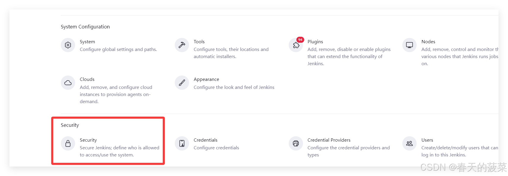 在管理页面中,找到并点击 "Configure Global Security" (配置全局安全)[见下图是有差异的,我的是Security]。
