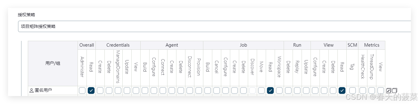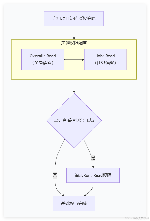 下图清晰地展示了授权矩阵中anonymous用户所需的核心权限(Overall/Read和Job/Read):