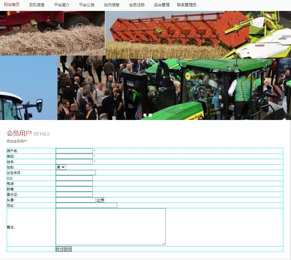 (1)管理员可以对农机的类别及农机信息、站内新闻信息进行管理,对其进行增删改查等操作。