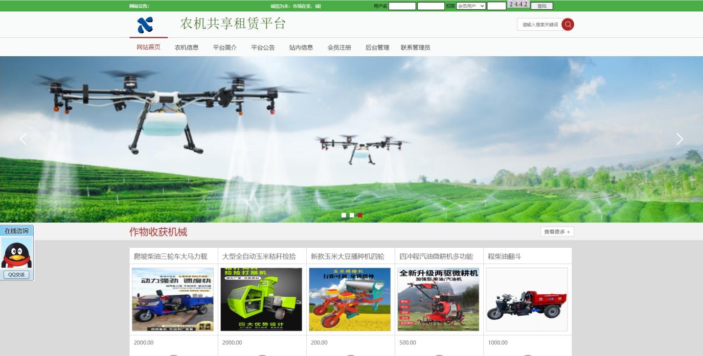 (1)游客以及会员都可以查看农机信息并通过关键字搜索农机相关信息、浏览站内新闻信息、关于农机的租赁问题可以进行在线沟通。
