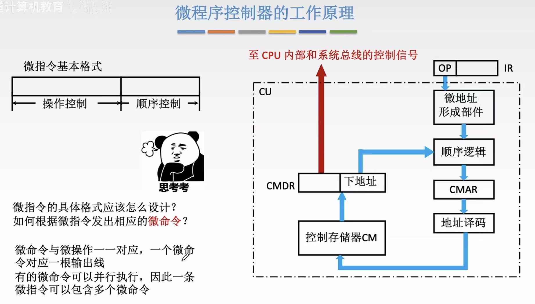 - PC vs μPC(即 IR vs CMDR):PC 是"程序计数器",指向主存中的指令,μPC(CMAR)是"微程序计数器",指向控制存储器中的微指令
