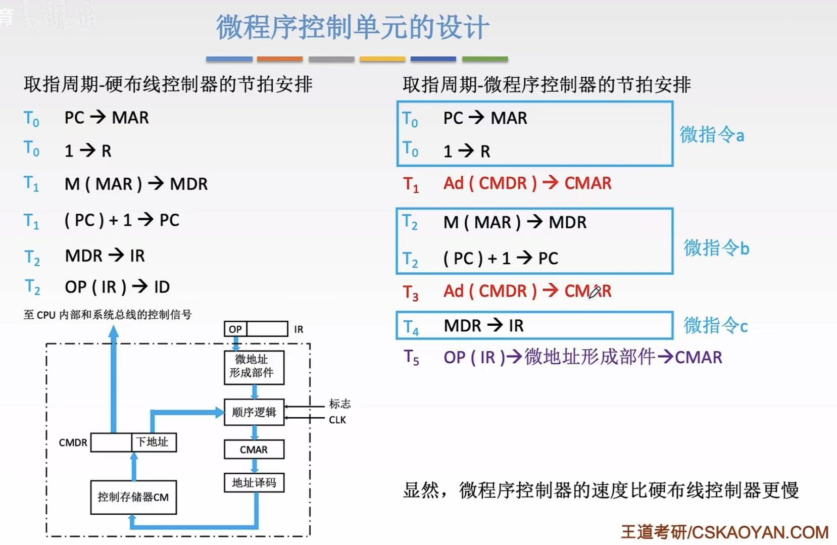 - CMAR=μPC=MAR+PC:融合地址寄存器和计数寄存器的功能