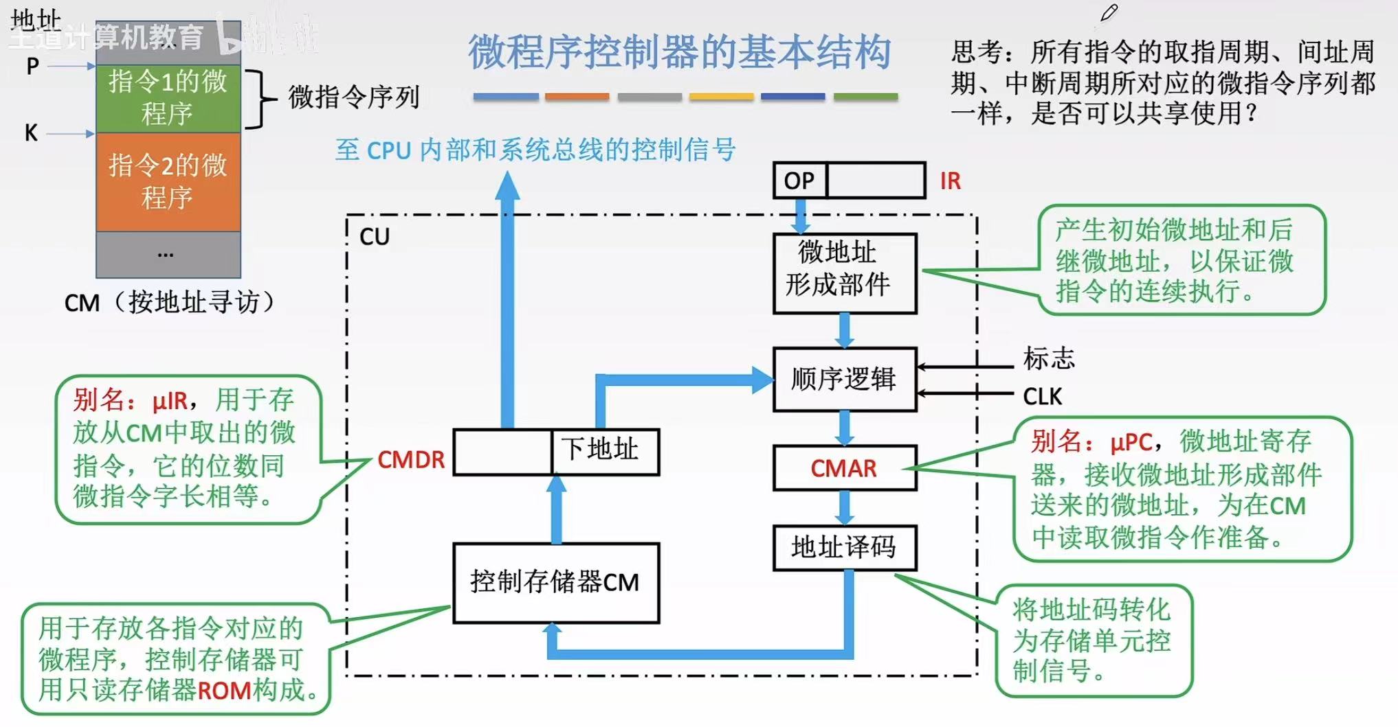 - 下地址 :顺序逻辑根据下地址、标志位、CLK来生成下一条微指令的有效地址。
