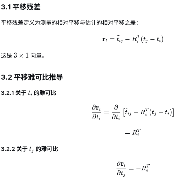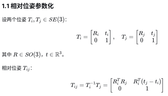 本节开始讲解SO3+t的形式来推导相对位姿之间的雅可比跟残差,因为在实际求解过程中,也可能只有纯旋转或者纯平移的情况,因此,这里采用分开方式推导,从而兼容这种单一融合的需求,接下来依然沿用之前的图