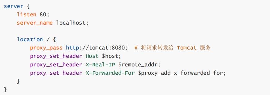 proxy_pass http://tomcat:8080 表示将请求转发到名为 tomcat 的服务(在 Compose 中,