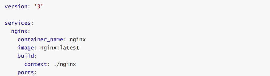 build 、 ports 等。确保每个字段的位置和缩进正确。
