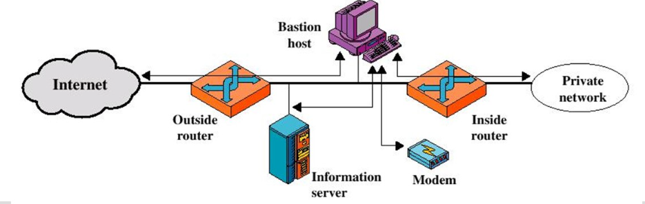 - 双宿主堡垒主机模型(屏蔽防火墙系统模型)