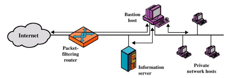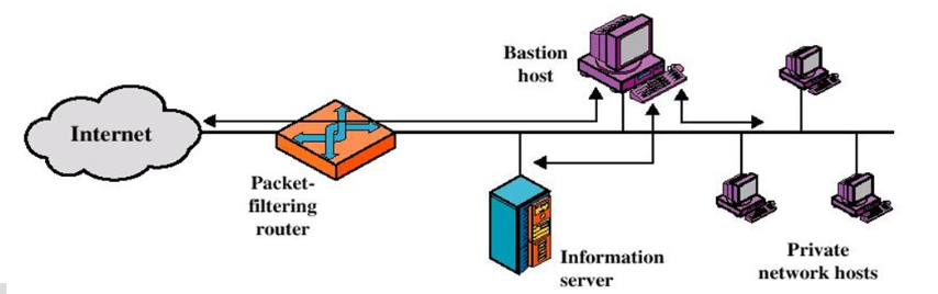 - 单宿主堡垒主机(屏蔽主机防火墙)模型