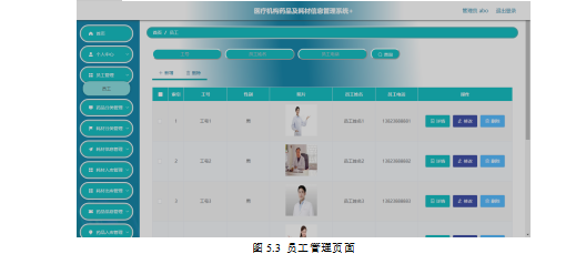 如图5.3显示的就是管理员对员工信息进行查询,添加,删除以及批量删除操作。