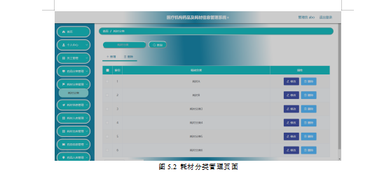 如图5.2显示的就是管理员对耗材分类信息进行查询,添加,删除以及批量删除操作。