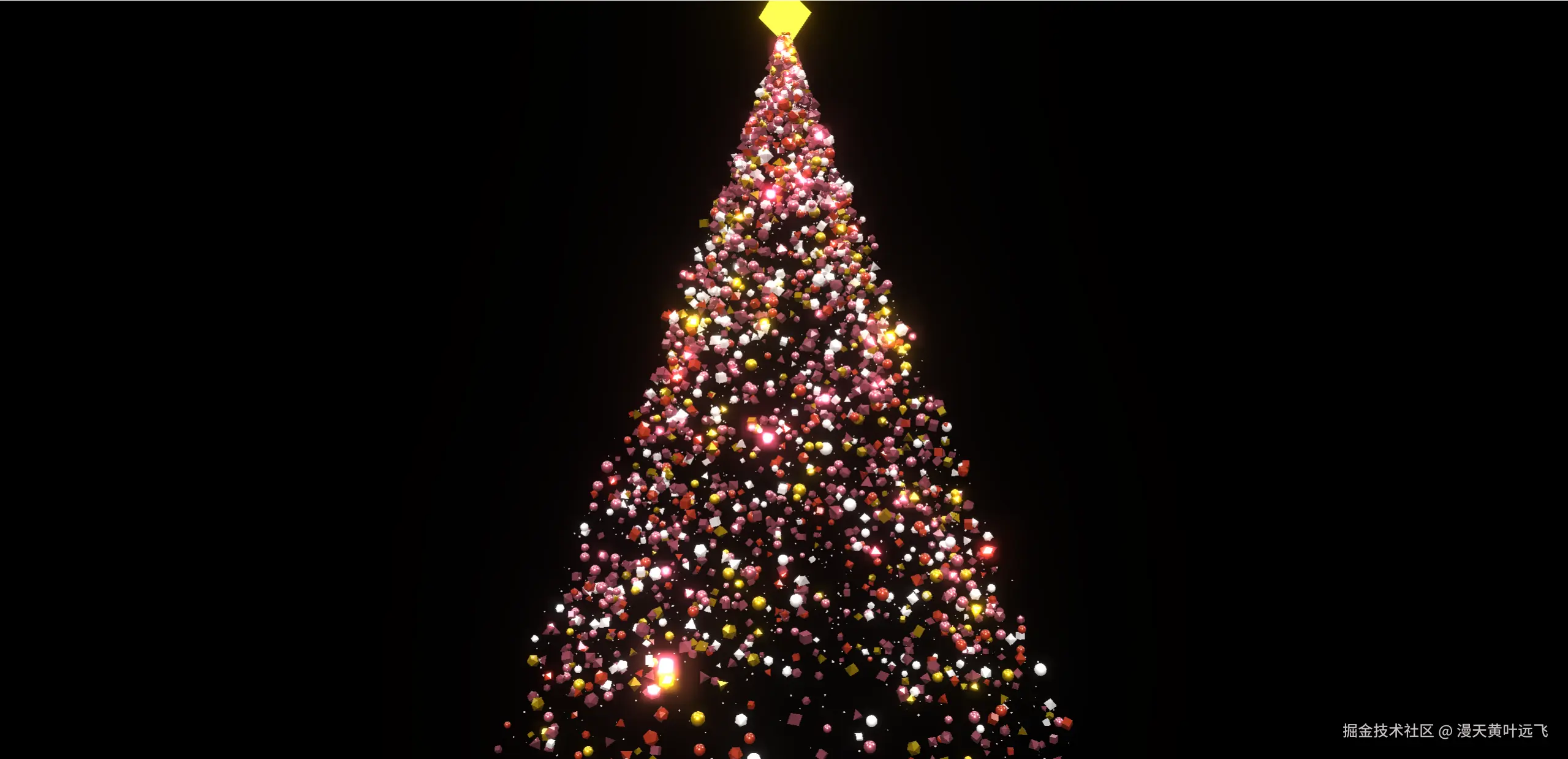 我:"哥们,写个 HTML ,用Three.js做一棵豪华的粒子圣诞树,背景要黑色,粒子要是金色的,搞得高 > 级点。