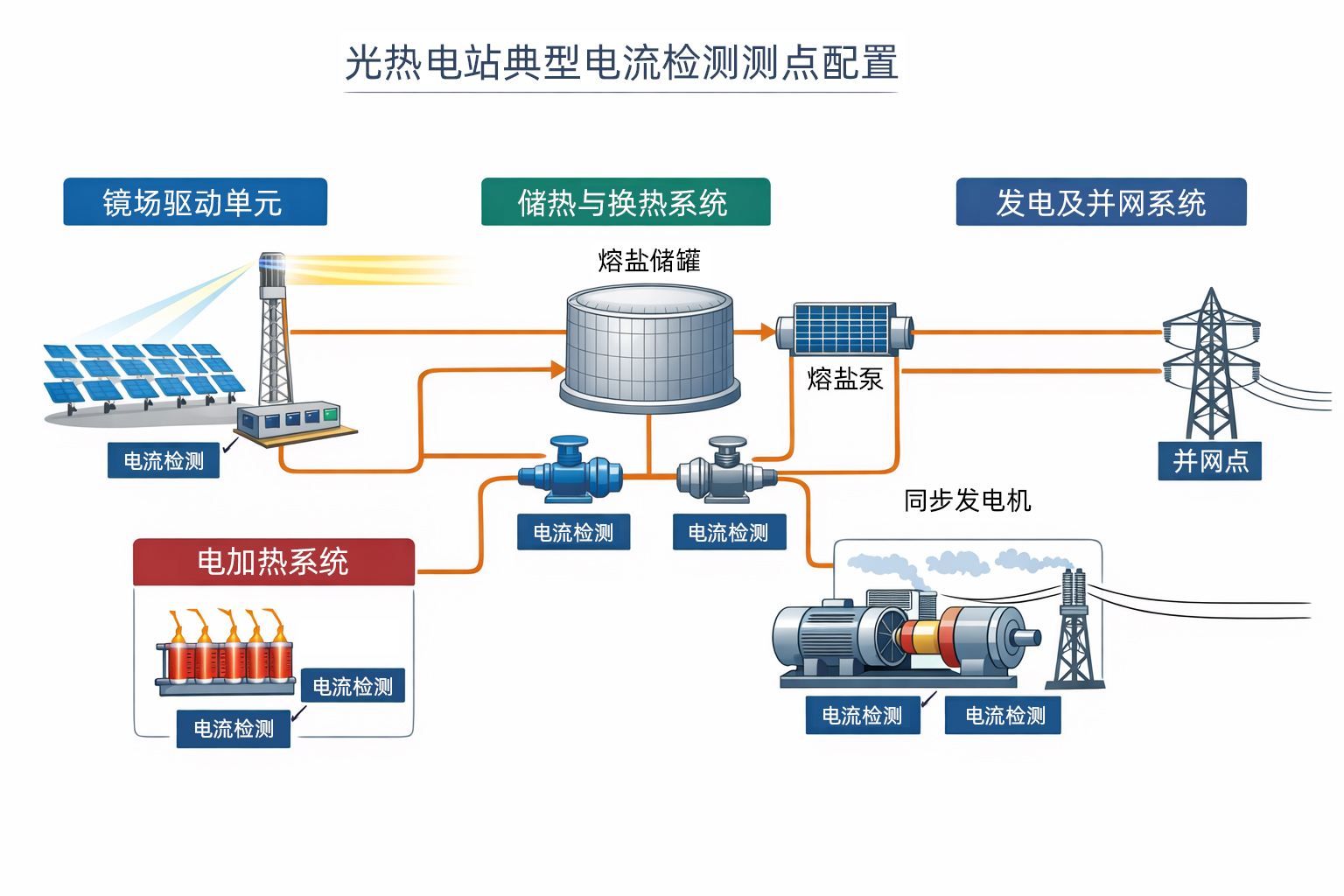 在光热电站中,电流检测通常围绕以下几类测点展开: