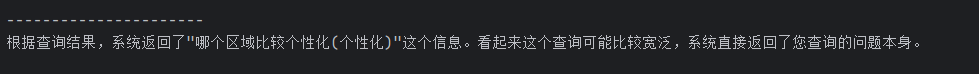 String response = bot.chat("我是张三,我想查一下哪个区域比较个性化");