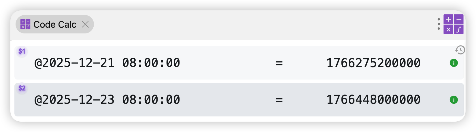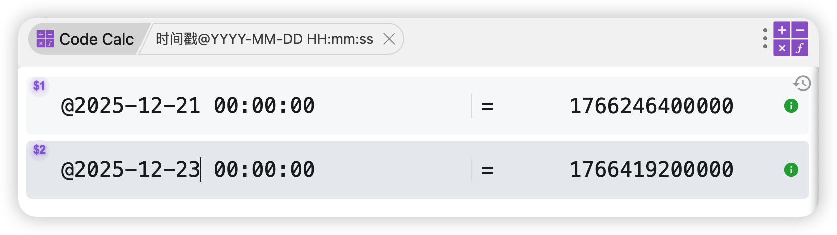 对一个索引中的 date 类型字段设置 RangeQuery 条件,查询 2025-12-21 至 22 日之间的数据,时间格式的字符串和时间戳之间的转化关系如下: